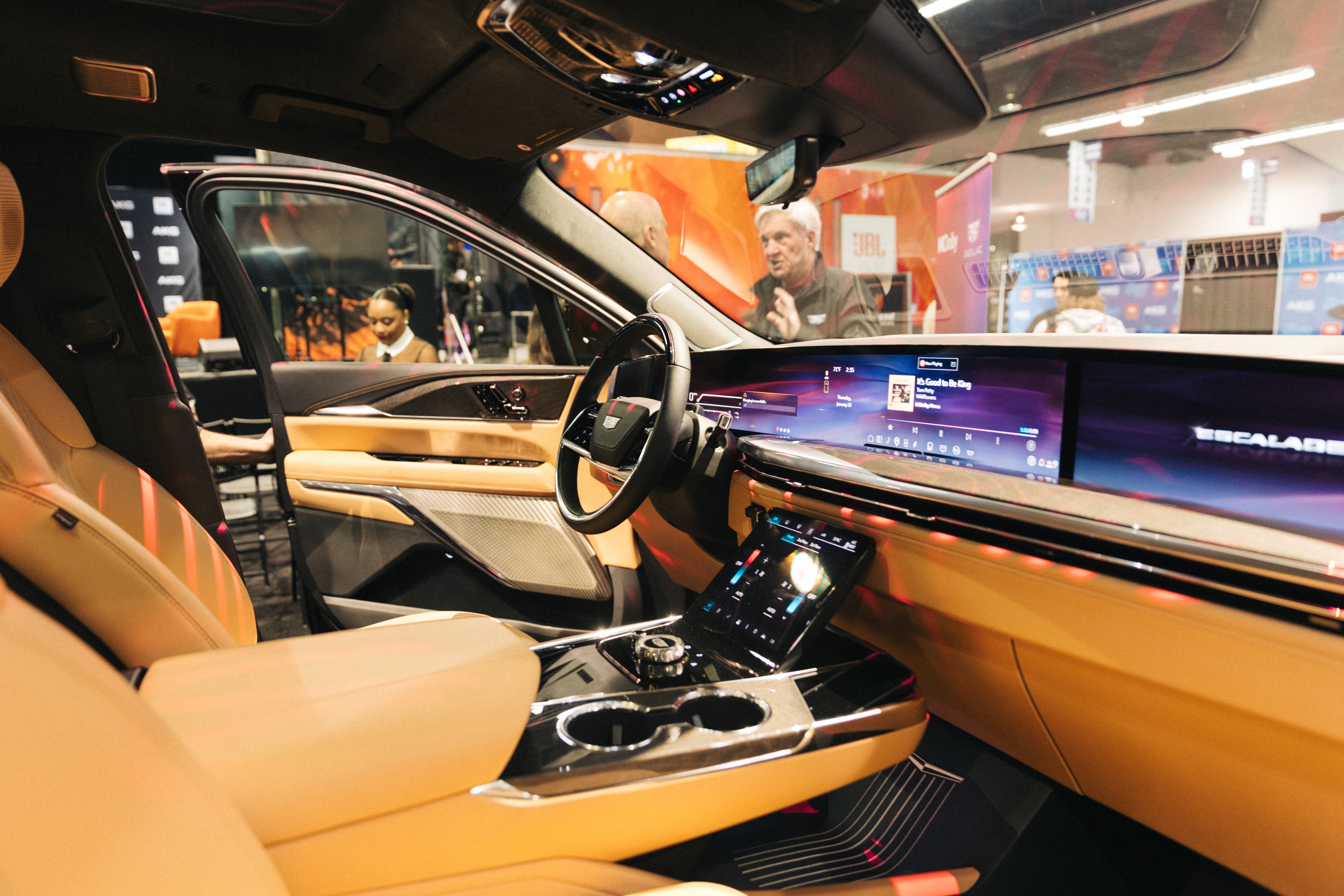 It’s the next day, driving from the Andaz West Hollywood along the Sunset Strip, then south toward Anaheim. Cadillac and AKG offered me the use of a 23-speaker VISTIQ to go down to the National Association of Music Merchants [NAMM] trade show for a day, where the new AKG mics will be publicly debuted, among other products. And I’m on my way, caught in bumper-to-bumper traffic and relishing it. It just means I have more time with my music. I’ve made a playlist, “good Carma,” full of Dolby Atmos tracks, and I’m idling in denim blue upholstery and invisible tailoring. It’s a personal pleasure dome where precision is sanctified and synth pads might be sentient.