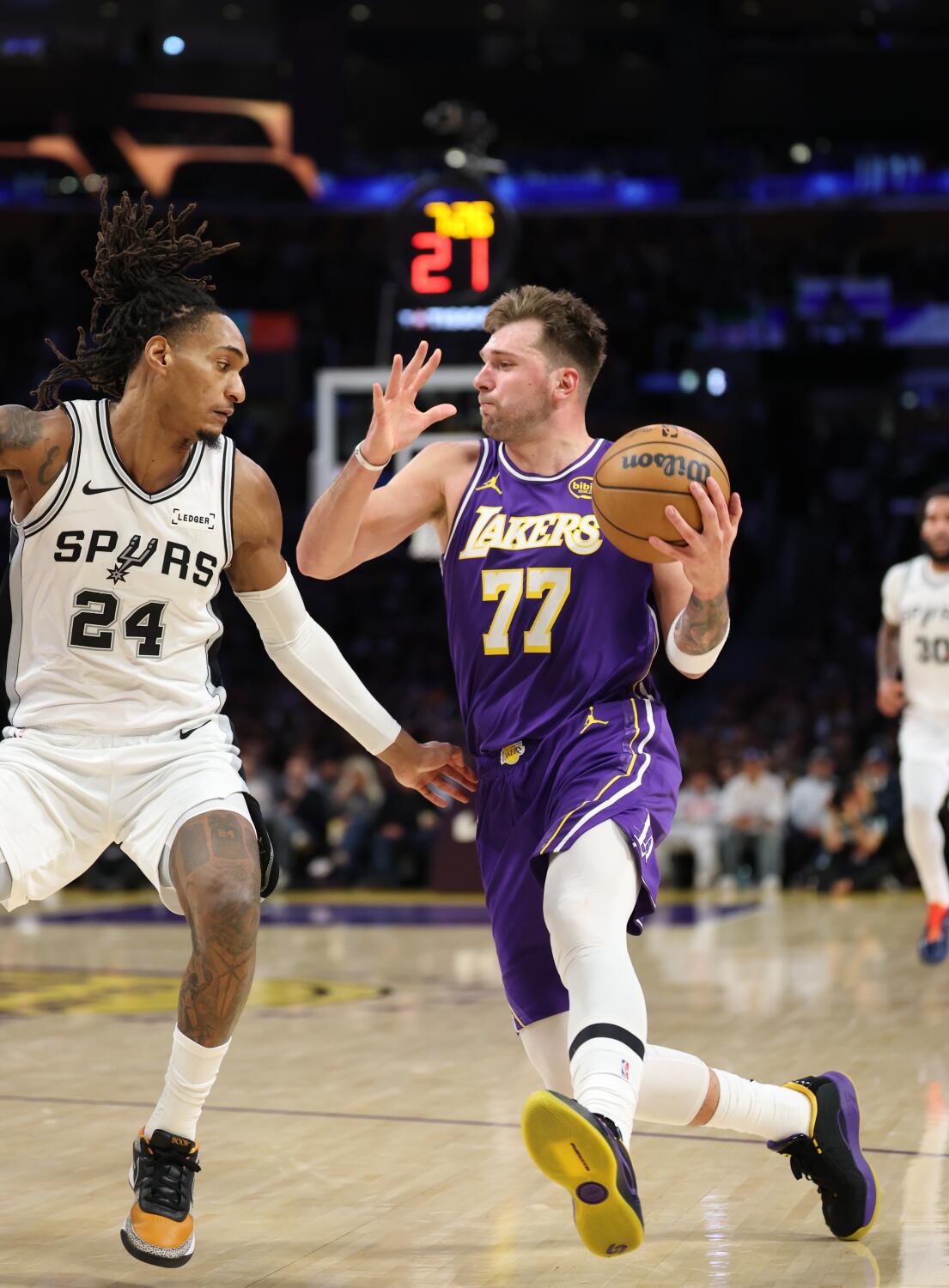 Luka Doncic’s defense (yes, defense) helps Lakers hold off the Spurs